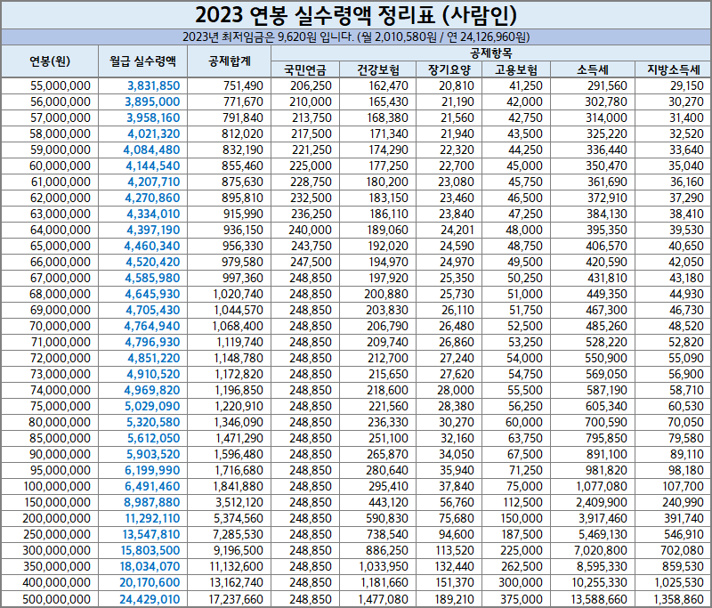 연봉 실수령액은 4대보험과 소득세를 제하고 입금되는데요. 실수령액을 알아야 저축, 투자와 지출 계획을 정확히 세울 수 있으니 매년 초에 확인하고 있어요. 2023년 연봉 실수령액과 최저임금 알아볼게요.